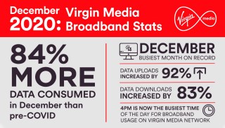 Virgin Media Broadband Customers consumed 84% more information in December 2020 than pre-COVID-19