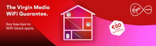 The Wi-Fi Guarantee includes a Smart Wi-Fi Pod, plus up to 2 additional pods and a technician visit if needed, to ensure customer get a minimum speed of 30Mb in every room for an additional €5 a month. If black spots persist, Virgin Media guarantees €50 credit.