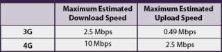 The estimated maximum upload and download speeds achievable at least once in any 24 hour period in realistic usage conditions by Virgin Mobile Subscribers are as follows :