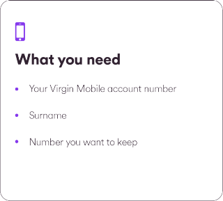 It's so  quick and easy to move your current number over to Virgin Mobile. All you need to do is follow the 3 steps once you've recieved your new Virgin Mobile SIM.