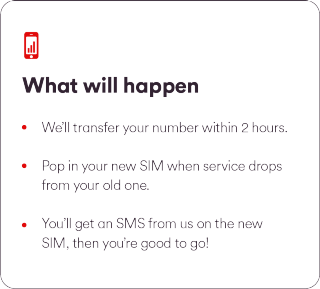 It's quick and easy to move your number to Virgin Mobile, in 3 easy steps. Once you've recieved your SIM, here's the info you need: